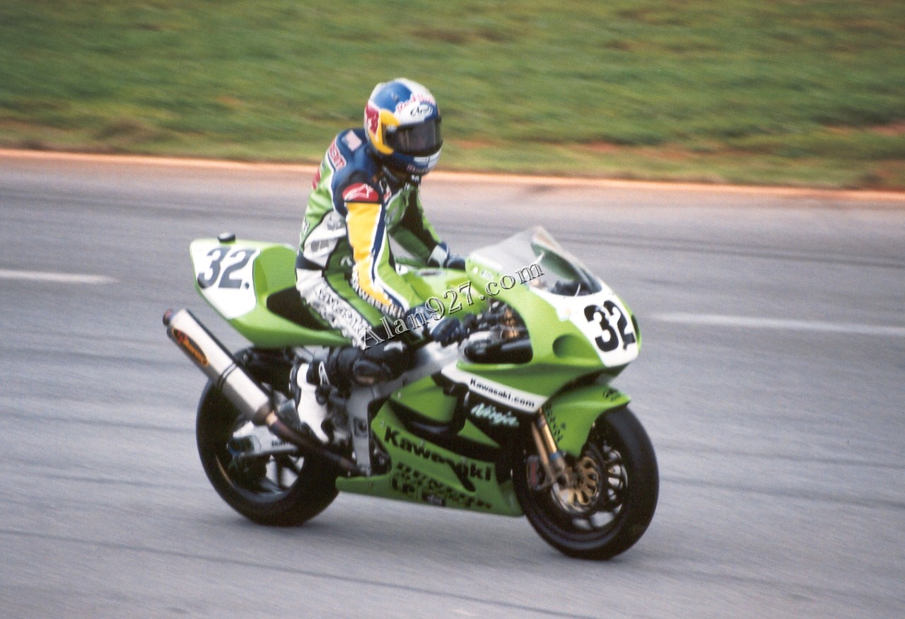 Eric Bostrom during practice session Road Atlanta 2003 (Kawasaki)