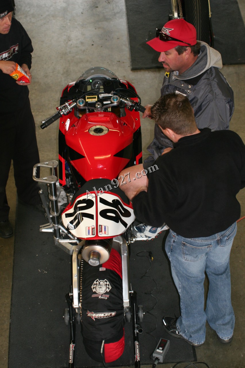 Aaron Gobert and crew working on his bike 2006 AMA Superbike Shootout at Mid-Ohio